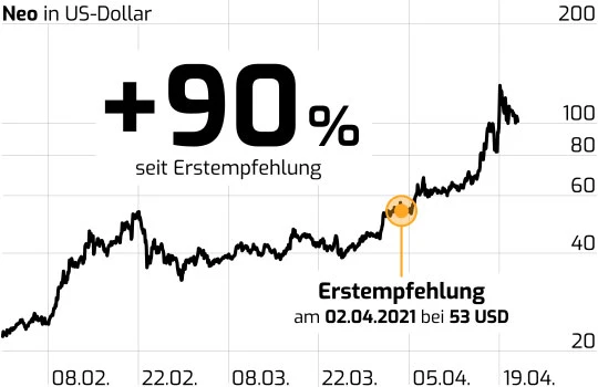 Wer das Potenzial von Ethereum in der Vergangenheit bereits frühzeitig erkannt hat, konnte von enormen Renditen profitieren. Der Krypto-Experte Gerd Weger hatte den Coin bereits im Februar 2020 auf seiner Liste, als er den meisten Anlegern noch völlig unbekannt war. Mithilfe seiner unkonventionellen Analysemethoden erkennt der Profi den echten Wert eines Coins und kann so Empfehlungen geben, die ihrer Zeit voraus sind. Auch aktuell überrascht er Anleger mit exotischen Top-Coins aus Asien, die mit satter Performance überzeugen: zum Beispiel das als „chinesisches Ethereum“ bekannte Blockchain-Projekt NEO. Dank seiner Empfehlung konnten Anleger in nur drei Wochen 90 Prozent Rendite einfahren!
