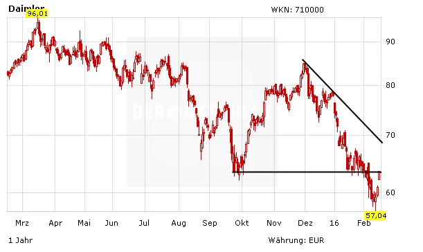Durch die Kursgewinne der vergangenen Tage hat die Daimler-Aktie den Widerstand bei 63,48 Euro angelaufen. Aus charttechnischer Sicht wäre es nicht nur wichtig, dass das Papier diese Hürde nimmt, sondern auch den Abwärtstrend knacken kann. Wie sich Anleger positionieren sollten, erfahren Anleger in der aktuellen Ausgabe. Diese können Sie hier bequem downloaden.