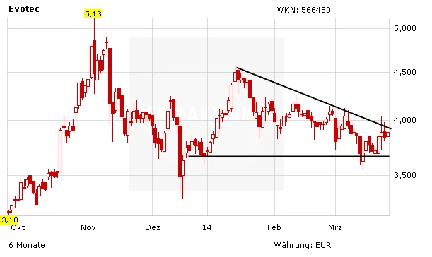 DER AKTIONÄR geht davon aus, dass mit diesen Zahlen die Bilanz endgültig bereinigt sein sollte und ist daher weiter optimistisch, was die Entwicklung der Evotec-Aktie angeht. Gelingt der nachhaltige Sprung über kurzfristigen Abwärtstrend, wäre dies als neues Kaufsignal mit Ziel 4,60 Euro zu werten.