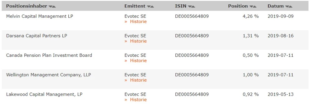 Die zahlreichen Kaufempfehlungen und vielversprechenden Einschätzungen zur Biotech-Schmiede sind nach dem Kursrutsch verpufft. Auch Insiderkäufe des Vorstandsvorsitzenden Werner Lanthaler haben der Aktie nicht auf die Sprünge geholfen. Begleitet von einem positiven Newsflow in den kommenden Wochen sollte die Evotec-Aktie allerdings die Bodenbildung abschließen und dann wieder die Bullen das Zepter in die Hand nehmen. Melvin Capital Management, Wellington Management und Co könnten dann gehörig ins Schwitzen geraten.