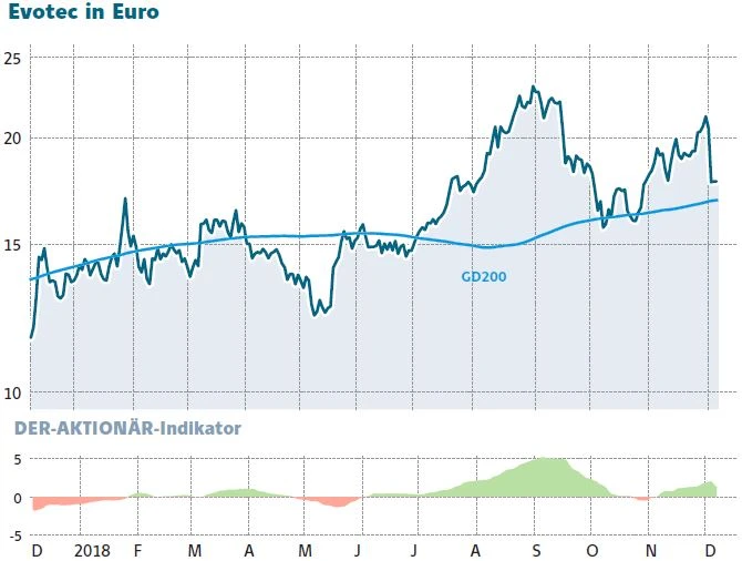 Die Aktie von Evotec ist in den vergangenen Tagen massiv eingebrochen. Mehr als 20 Prozent hat der Wert seit Montagmorgen eingebüßt. Eine wirkliche Hiobsbotschaft gab es nicht. Es belasteten jedoch die Mischung negativ aufgenommen Aussagen des Managaments in einem Bloomberg-Interview und Leerverkäufen. Evotec wolle zweigleisig fahren, um das Unternehmen auf Wachstumskurs zu halten: Investitionen in die eigene Produktpipeline, plus Zukäufe.