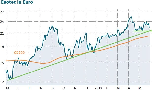Demnächst stehen weitere Investorenkonferenzen auf dem Programm, die der Aktie Unterstützung verleihen könnten. Am 4. Juni beispielsweise startet die Jefferies 2019 Global Healthcare Conference in New York. Weitere Termine, die sich Anleger vormerken sollten, sind der 19. Juni – hier findet die ordentliche Hauptversammlung statt – und der 14. August – hier legt Evotec den Bericht für das erste Halbjahr vor. Zudem darf man gespannt sein, welche weiteren Deals das Team um den Vorstandsvorsitzenden Werner Lanthaler in den kommenden Wochen und Monaten noch schnüren wird.