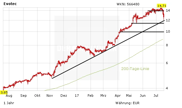 Beim Blick auf den lanfristigen Chart der Evotec-Aktie stockt einem der Atem: Rund 262 Prozent konnten das Papier binnen eines Jahres zulegen. Doch seit zwei Tagen zählt Evotec zu den schwächsten Werten auf dem deutschen Kurszettel. Hat der Highflyer seinen Zenit erreicht?