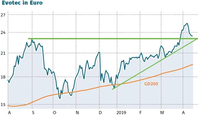 Lange hatte es gedauert, bis der Aktie von Evotec der Sprung über das Mehrjahreshoch vom September vergangenen Jahres bei 23,36 Euro gelungen war. Danach war der Wert kaum mehr zu bremsen. Bis auf knapp 26 Euro konnte die Aktie zulegen. Beflügelt wurde der Wert von sehr guten Geschäftszahlen für 2018 sowie einem starken Ausblick auf das laufende Jahr.
