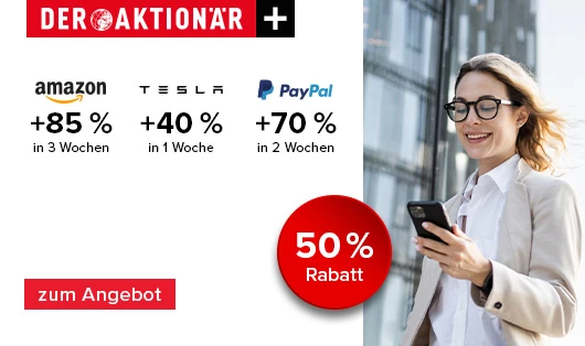 Mehr Empfehlungen, mehr Einschätzungen, mehr Chancen bekommen Sie jetzt mit DER AKTIONÄR+ zum unschlagbaren Vorteilspreis serviert. Starten Sie jetzt Ihr Plus-Abo mit 50 Prozent Rabatt.