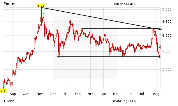 An der Börse dürften diese Zahlen gut aufgenommen werden. Zuletzt hat aus charttechnischer Sicht die Marke bei 3,30 Euro gehalten. Einen positiven Gesamtmarkt vorausgesetzt könnte die Aktie nun wieder in Richtung der 4,20 Euro laufen. Anleger warten aber vorerst ab, ob diese Aufwärtsbewegung nachhaltig ist.