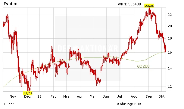 Im Zuge der allgemeinen Marktkorrektur hat es auch die Aktien der deutschen Biotechs mit Gewinnmitnahmen erwischt. Shortseller haben die Korrektur noch verstärkt. Evotec ist seit dem Septemberhoch bei 23,36 Euro bis in den Bereich der 16 Euro-Marke zurückgefallen. Hier verläuft auch die 200-Tage-Linie, die es nun zu verteidigen gilt. Derzeit notiert die Aktie bei 16,20 Euro. Eine Übertreibung nach unten ist im Zuge einer größeren Korrektur nicht unwahrscheinlich. Anleger können versuchen, mit Abstauberlimits zum Zuge zu kommen. Denn fundamental steht Evotec besser da denn je. Im laufenden Jahr hat das Unternehmen um den Vorstandsvorsitzenden Dr. Werner Lanthaler wieder eine ganze Reihe hochinteressanter Deals eingefädelt.