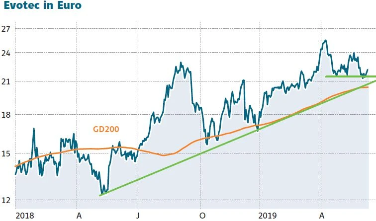Unterstützung erhält die Aktie von der jüngsten Meldung, dass Evotec mit der Bill & Melinda Gates Foundation eine fünfjährige Partnerschaft geschlossen hat. Während dieses Zeitraums wird Evotec eine Fördersumme von der Gates Foundation von rund 23,8 Millionen Dollar erhatlen. Ziel ist es, neue, wirksamere Behandlungsregime für Tuberkulose („TB“) zu finden. TB ist eine durch die Luft übertragene Infektionskrankheit, die am häufigsten durch Mycobacterium tuberculosis-Bakterien („MTB“) verursacht wird. Die Krankheit betrifft häufig die Lunge, kann sich aber auch auf andere Körperteile ausbreiten.