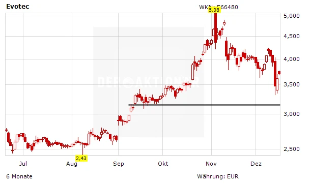 War die Aktie von Evotec noch in den vergangenen Tagen massiv unter Druck geraten, ist sie heute bereits wieder der Top-Performer im TecDAX. Derzeit notiert das Papier rund vier Prozent im Plus bei 3,76 Euro.