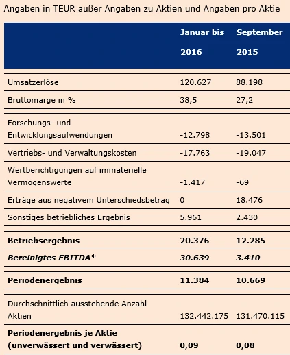 Die Hamburger bestätigten ihre im Juli erhöhte Prognose für das Gesamtjahr und äußerten sich bereits optimistisch für 2017, ohne dies konkreter auszuführen. 2016 soll der um Sondereffekte bereinigte operative Gewinn (Ebitda) mehr als doppelt so hoch ausfallen wie im Vorjahr (2015: 8,7 Millionen Euro). Der Umsatz soll um mehr als 15 Prozent wachsen, nach 115,4 Millionen Euro im Vorjahr.
