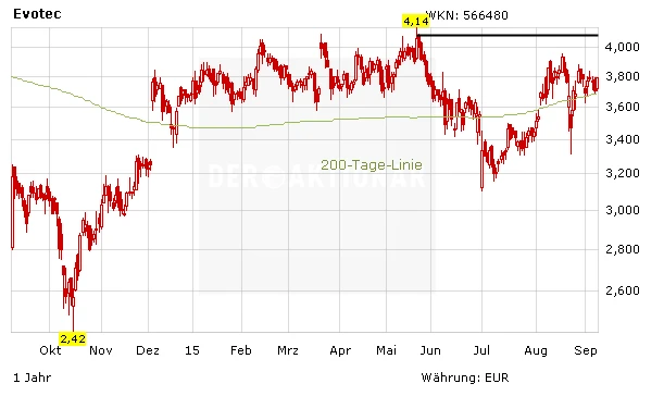 Nachdem Evotec zuletzt bereits Sanofi als Partner gewonnen hatte, zeigt der neue Deal wie interessant Evotec für die großen Player der Pharma- und Biotech-Branche ist. Jedoch sollten Anleger für einen Einstieg bei Evotec das Kaufsignal, den Sprung über das Jahreshoch bei 4,14 Euro, abwarten. Bereits investierte Anleger beachten den Stopp bei 2,90 Euro.