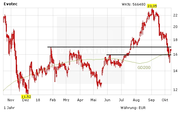Nach der deutlichen Korrekturbewegung in den vergangenen Wochen hat sich die Aktie von Evotec zum Ende der vergangenen Woche hin wieder erholen und auch die wichtige Unterstützung in Form der 200-Tage-Linie zurückerobern können. Das charttechnische Bild hat sich dadurch deutlich aufgehellt. Dies gilt es nun, zu bestätigen. Fundamental läuft bei Evotec ohnehin, wie bereits mehrfach erwähnt, alles bestens. Das Unternehmen hat in diesem Jahr wieder eine ganze Reihe höchst aussichtsreicher Deals geschlossen, die sich in den kommenden Jahren verstärkt positiv auswirken sollten. Erst vor einigen Tagen hat Evotec gemeldet, dass die bestehende IPSC-Partnerschaft mit Celgene erweitert wurde. Evotec erhält für die den Zugriff auf zusätzliche Zelllinien eine Zahlung in Höhe von sechs Millionen Dollar. Evotec und Celgene beabsichtigen mit ihrer im Dezember 2016 geschlossenen Allianz, krankheitsmodifizierende Therapieoptionen für eine Vielzahl neurodegenerativer Erkrankungen zu identifizieren. Aktuell zugelassene Medikamente lindern die Symptome nur kurzfristig und es gibt einen hohen ungedeckten medizinischen Bedarf an Therapieoptionen, die den Krankheitsfortschritt verlangsamen oder umkehren, so Evotec.