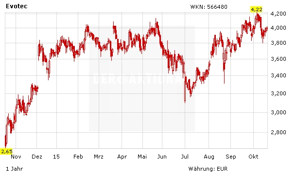Die Aktie von Evotec hat bereits in den vergangenen Monaten deutliche Stärke gezeigt und sogar kurzzeitig die Marke von 4 Euro überwinden können. Derzeit notiert das Papier knapp darunter. DER AKTIONÄR ist nach wie vor zuversichtlich, was die weitere Entwicklung von Evotec angeht. Anleger ziehen zur Absicherung den Stopp auf 3,05 Euro nach.