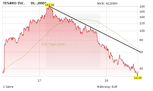 Grundsätzlich würde Tesaro gut in den Roche-Konzern passen, dagegen spricht allerdings die im Februar geschlossene Kooperation und die schwache Entwicklung von Zejula. Allerdings ist die Aktie auf ein attraktives Bewertungsniveau zurückgefallen. An den neuen Spekulationen sollten sich nur hartgesottene Anleger beteiligen mit einem Stoppkurs bei 33 Euro.