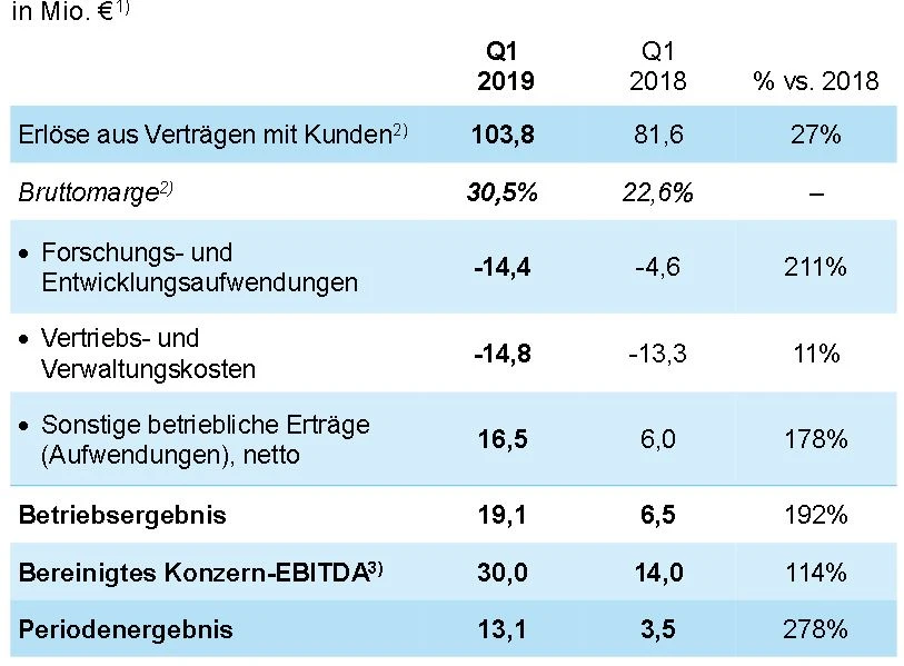 Gleichzeitig bestätige der Biotechkonzern die Jahresziele für 2019. Sowohl der Umsatz als auch das bereinigte Ebitda sollen um jeweils zehn Prozent zulegen.