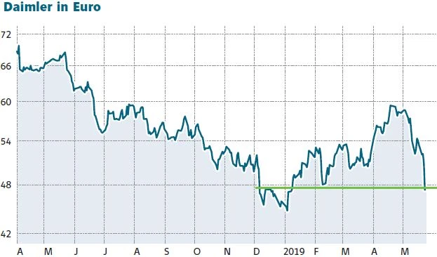 Bei Daimler gilt es, einen tragfähigen Boden auszubilden. Der gestrige Kursrutsch ist allerdings weniger dramatisch, als man zunächst meinen mag. Die Aktie wurde am Donnerstag ex Dividende gehandelt. Daimler schüttet an seine Aktionäre 3,25 Euro aus. Mit einer Rendite von mehr als sechs Prozent ist Daimler damit der beste Zahler im DAX. Anleger sollten sich vom gestrigen Abschlag nicht beunruhigen lassen. Zeichnet sich eine Lösung im Handelsstreit zwischen den USA und China ab, sollte sich die Daimler-Aktie schnell wieder erholen.