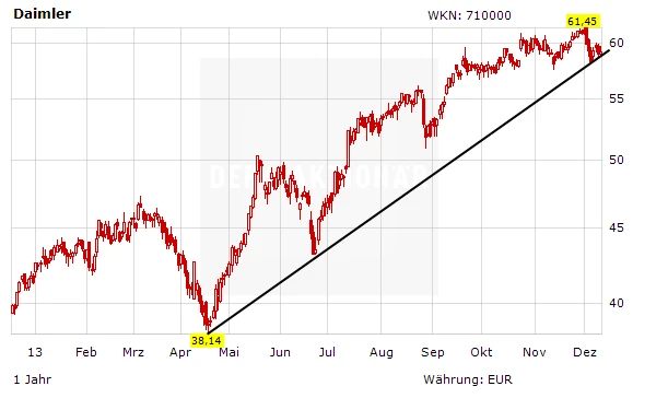 Spielt der Gesamtmarkt mit, könnte die Daimler-Aktie in den nächsten Wochen nach Ansicht des AKTIONÄR zunächst die Marke von 65 Euro in Angriff nehmen.