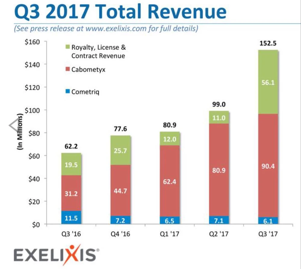 Die Basis für die Bewilligung lieferte Exelixis mit erstklassigen Daten aus der CABOSUN-Studie, in der die Biotech-Schmiede die Überlegenheit von Cabozantinib (Cabometyx) im Vergleich zu SUTENT von Pfizer demonstrierte. Cabometyx ist bereits seit April 2016 in den USA zugelassen, jedoch als Zweitlinien-Therapie beim fortgeschrittenem Nierenkrebs. Mit der vorzeitigen Zulassung – Exelixis selbst und auch die Marktteilnehmer rechnet mit einer Genehmigung im ersten Quartal 2018 – dürfte die Biotech-Firma das Wachstum weiter forcieren.