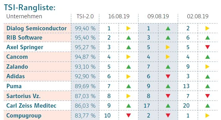 Der DAX fährt seit Tagen Achterbahn. Die Kurskapriolen schlugen sich auch in der HDAX TSI-Rangliste nieder. Die ersten zehn Plätze wurden teilweise ordentlich durcheinandergewürfelt. Auf das TSI Depot im AKTIONÄR hatten die letzten Tage wenig Einfluss.