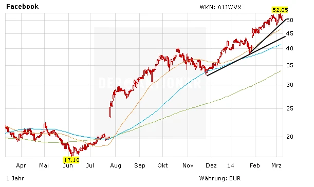 Die Facebook-Aktie profitiert am Montag von einem positiven Analystenkommentar der UBS. Eric Sheridan hob in einer Studie sein Kursziel für die Papiere des Internet-Netzwerks von 72 auf 90 US-Dollar an und bestätigte sein Kaufvotum. Die im Schlussquartal 2013 gesehene Preissetzungsstärke für Werbung dürfte sich Anfang 2014 fortgesetzt haben, schrieb der Analyst. Sie dürfte länger andauern als bisher erwartet. Unternehmen mit Markennamen schienen Facebook verstärkt als Werbekanal zu nutzen.