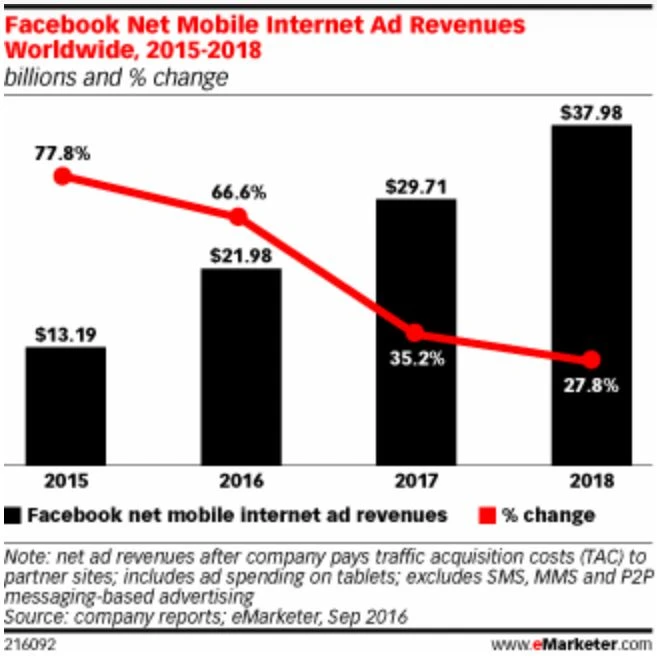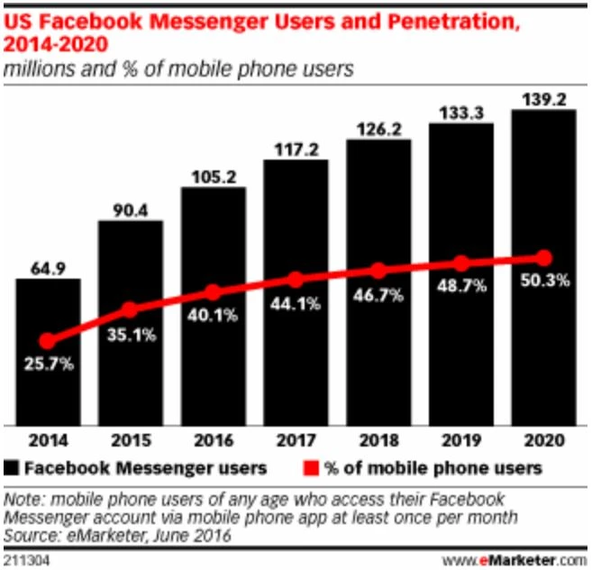 Die Werbeerlöse, Facebooks wichtigste Einnahmequelle, stiegen um 59 Prozent auf 6,8 Milliarden Dollar. Der Anteil an dieser Summe, den das Geschäft mit Anzeigen auf Mobilgeräten ausmacht, legte im Jahresvergleich von 78 auf 84 Prozent zu. Kein Wunder, denn immer mehr Smartphonebesitzer nutzen den Facebook Messenger. Im Jahr 2020 soll der Messenger bereits auf der Hälfte aller US-Smartphones installiert sein.