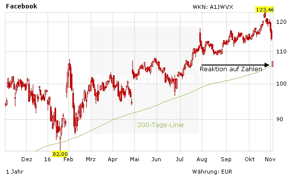 Facebook veröffentlichte Mittwoch nach Börsenschluss die Zahlen fürs dritte Quartal. Der Internet-Konzern meldete einen Gewinn je Aktie von 1,09 Dollar und übertraf damit die Erwartungen der Analysten um 12 Prozent. Wie kommt es dann zu einem Abrutschen der Aktie um zwischenzeitlich acht Prozent?