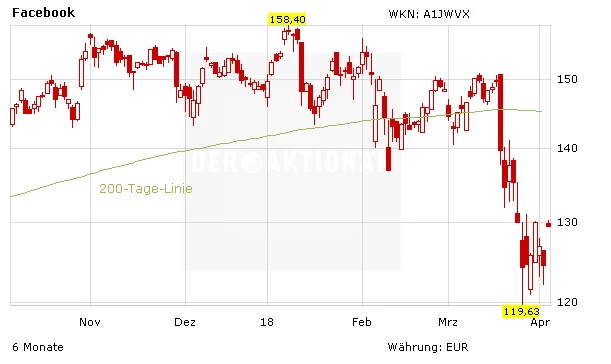 Es wäre es an dieser Stelle jedoch zu früh, um einen blinden Nachkauf zu empfehlen. Der Skandal beschäftigt noch immer die Medien und Märkte – zudem wird Zuckerberg erst am 11. April vor dem US-Kongress zum Datenskandal aussagen. Die Aktie könnte damit weiterhin kurzfristigem Druck ausgesetzt sein. Bei einem Kursverlust von knapp 21 Prozent seit dem Hoch im Februar, müssen Sie nicht der erste Nachkäufer sein, um von einem potenziellen Rebound zu profitieren. Es gilt: Nicht ohne charttechnischen oder fundamentalen Ansatzpunkt in fallende Kurse kaufen.