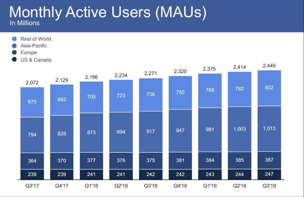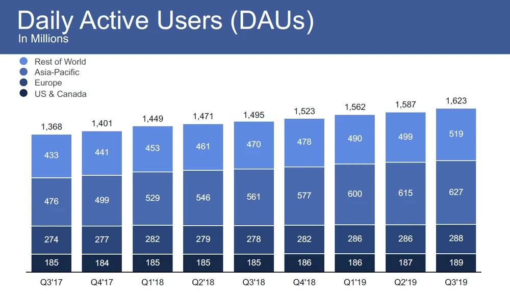 Besonders hervorzuheben ist der zuletzt wieder anziehende Nutzerwachstum. Im dritten Quartal 2019 legten die Daily Active Users (DAUs) um circa neun Prozent und die Monthly Active Users (MAUs) um circa acht Prozent gegenüber dem Vorjahresquartal zu.