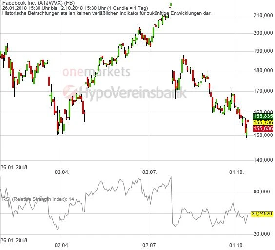 Anleger, die auf eine solche technische Reaktion spekulieren wollen, sollten einen Stopp unter der Marke von 150 Dollar platzieren (akt.: 155,70 Dollar). Fällt der Kurs unter das Tief aus dem Frühjahr, helfen Facebook auch sämtliche Indikatoren nicht mehr, dann bitten erneut die Bären zum Tanz.