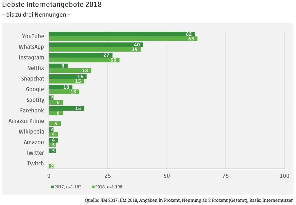 Tatsächlich hat Facebook aus den Fehlern seiner Vorgänger gelernt. Mit WhatsApp und Instagram hat der Konzern gleich zwei Plattformen zugekauft, welche die abgewanderten Jugendlichen auffangen. Laut einer Studie des Medienpädagogischen Forschungsverbunds Südwest, in der Jungen und Mädchen im Alter von 12 bis 19 Jahren aus Deutschland nach ihrem Lieblingsinternetangebot befragt wurden, hat Facebook zwar deutlich an Popularität verloren, Instagram hat dagegen zugelegt. Doch das kann das Unvermeidliche nur abbremsen.