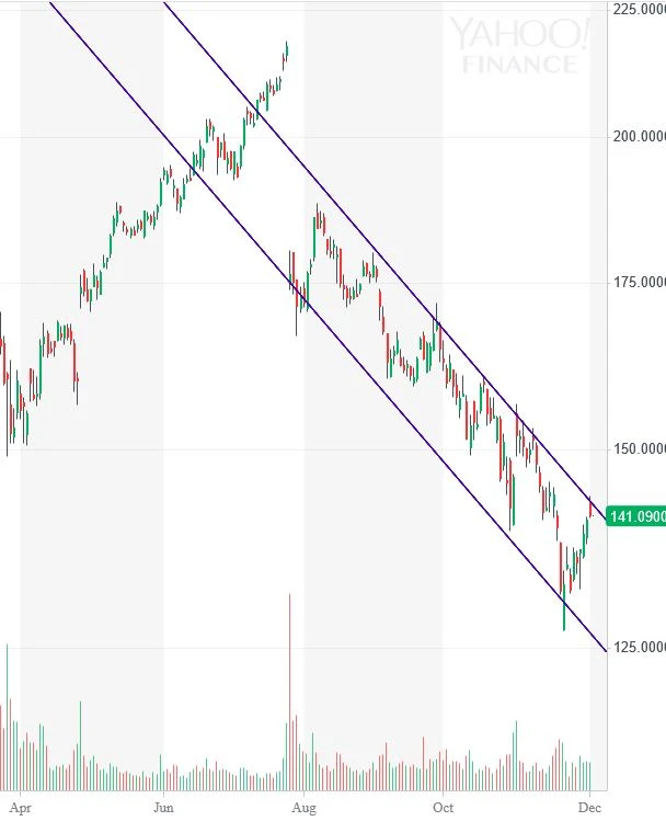Mit Erreichen des Tiefs bei 126 Dollar Ende November dürften selbst Hardcore-Fans ihr Vertrauen endgültig verloren haben. Die weit überdurchschnittlichen Handelsumsätze an dem Tag verbreiteten einen Hauch von Kapitulation. Seither hat sich der Aktienkurs zwar gefangen, mehr aber auch nicht.