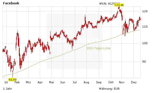 Die Facebook-Aktie bewegt sich in einem mittelfristigen Seitwärtstrend. Ein neues Kaufsignal entsteht, wenn der Chart den Widerstand bei 125 Dollar nachhaltig durchbricht.