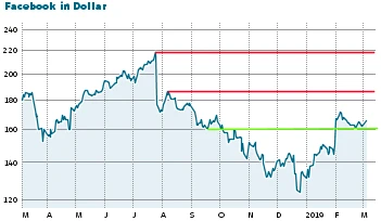 Facebook steigt zum Wochenauftakt um 2,2 Prozent auf 165,93 Dollar und damit auf den höchsten Stand seit drei Wochen. Der Anstieg – nicht der aktuelle, sondern die generelle Aufwärtsbewegung der letzten Wochen – ist das Resultat bärenstarker Q4-Zahlen (und einer insgesamt positiven Marktentwicklung).
