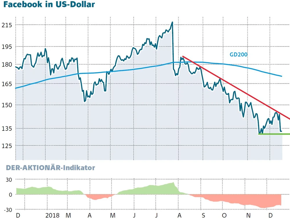 Die kurze Gegenbewegung für die Facebook-Aktie hat ein jähes Ende gefunden. Der Strom schlechter Nachrichten reißt einfach nicht ab – am Mittwoch gab es davon sogar gleich zwei. Hinzu kommt der schwache Gesamtmarkt. Die Aktie fällt am Mittwoch um sieben Prozent - das Ende des Rebounds.