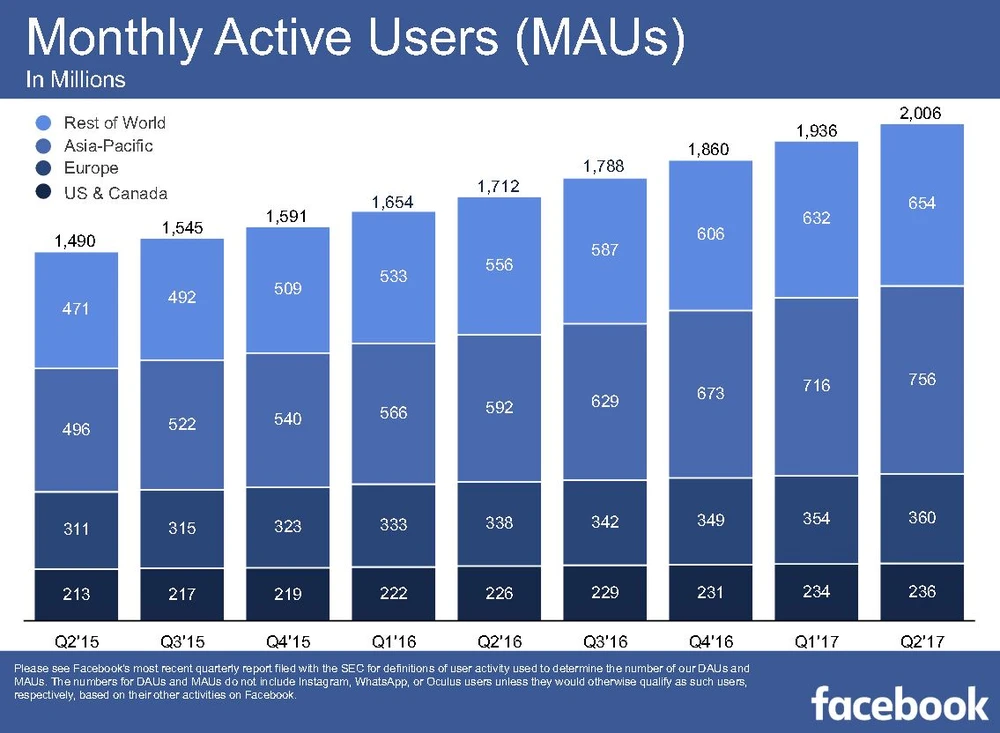 Nur ein kleiner Wachstumsfaktor ist der Anstieg der Nutzerzahlen, nicht zuletzt weil die meisten neuen Nutzer außerhalb der USA gewonnen werden und dort die Umsätze wesentlich geringer sind. Die schiere Zahl der Nutzer hingegen: GIGANTISCH!