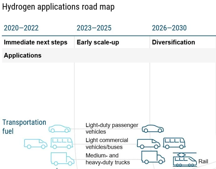 Was ansteht, ist eine unfassbare Wachstumsstory. Alleine in den USA wird sich die Anzahl von Brennstoffzellen-Fahrzeugen ver-700-fachen. Das sorgt für beste Perspektiven für Brennstoffzellenhersteller wie Ballard Power oder Plug Power. Zunächst setzen sich Vans durch, doch die Grafik zeigt, in wenigen Jahren setzen sich auch leichtere PKWs durch. BMW setzt auf diese Vision und testet bereits Wasserstoff-PKWs.