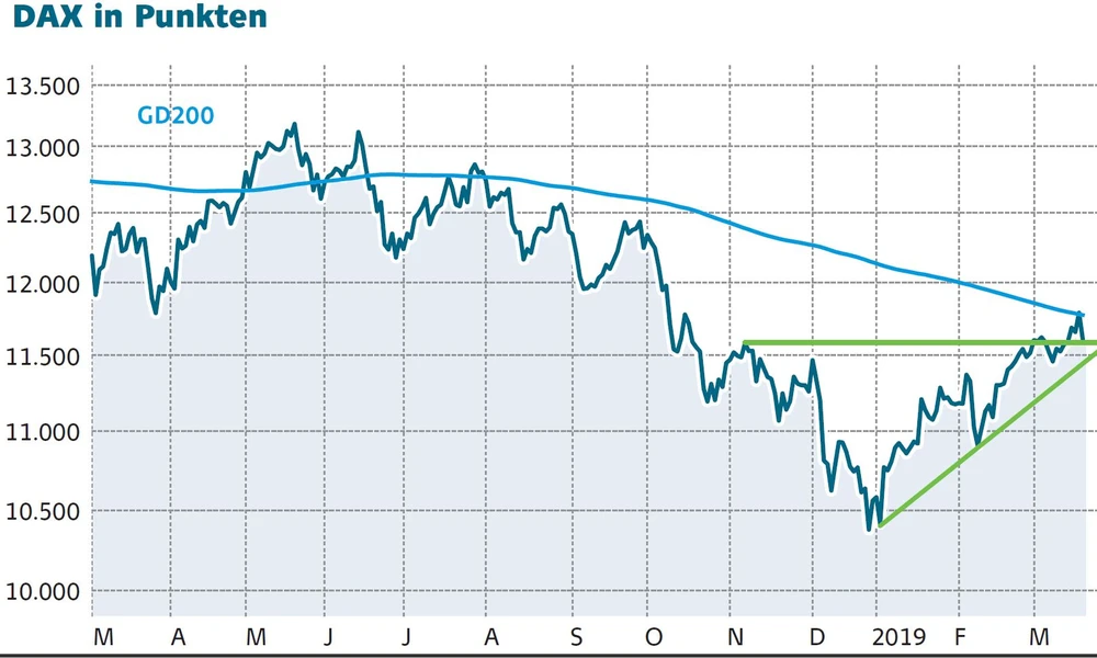 Der Bayer-Crash am Mittwoch hat das schöne Chartbild zerstört. Spannend wird es nun, ob das alte Ausbruchsniveau bei 11.570 Punkten verteidigt wird. Unterhalb dieser Marke drohen weitere Verluste. Anleger bleiben beim Turbo-Long mit der WKN DDT2MK mit Stoppkurs 9,10 Euro an Bord.