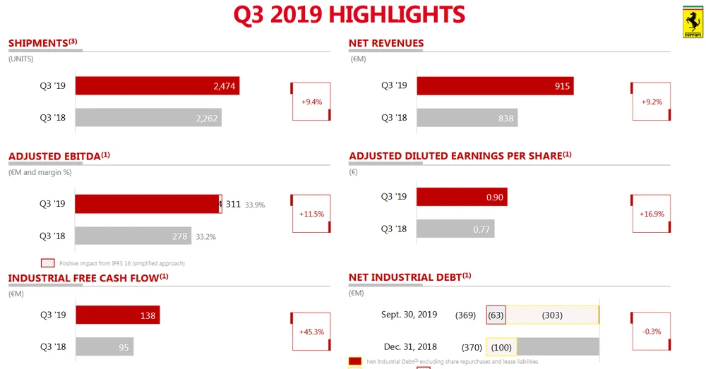 Ferrari geht jetzt von einem Umsatz von rund 3,7 Milliarden Euro aus und kalkuliert mit einem bereinigten operativen Ergebnis (Ebitda) von etwa 1,27 Milliarden Euro. Bislang hatte es lediglich geheißen, die Erlöse sollten mehr als 3,5 Milliarden Euro betragen. Das operative Ergebnis erwarteten die Italiener zuvor bei 1,20 bis 1,25 Milliarden Euro.