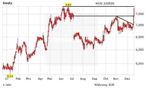 Bei Deutz hat sich in den vergangenen Monaten einiges getan. Die Aktie befindet sich im Aufwind und hat ihren Aufwärtstrend in den letzten Tagen beschleunigt. Immer mehr Analysten heben den Daumen. Auch der Chart sieht immer besser aus.