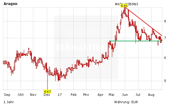 Interessant sieht derzeit auch der Chart aus: Der Kurs steht kurz vor dem Sprung über den seit Mai intakten Abwärtstrend bei 7,15 Euro. Gelingt es, die Hürde zu nehmen, wäre das ein neues Kaufsignal. Unterstützungen verlaufen um 6,80 und 7,00 Euro.