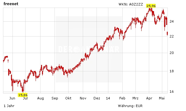 Nachdem Freenet in der vergangenen Woche den Markt mit schwächeren Quartalszahlen enttäuscht hat, am heutigen Morgen der nächste Schock für die Aktionäre. Die Aktie eröffnete tief im Minus. Grund für den Kursabschlag war jedoch nur die Auszahlung der Dividende in Höhe von 1,45 Euro je Aktie.