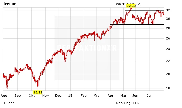 Seit Mai pendelt die Freenet-Aktie seitwärts in einem Korridor zwischen 29 und 32 Euro. Am kommenden Donnerstag, den 6. August will der Mobilfunkanbieter seine Quartalszahlen präsentieren. Dann dürfte es auch neue Impulse für die Aktie geben. Die Analysten sind im Vorfeld eher optimistisch gestimmt.