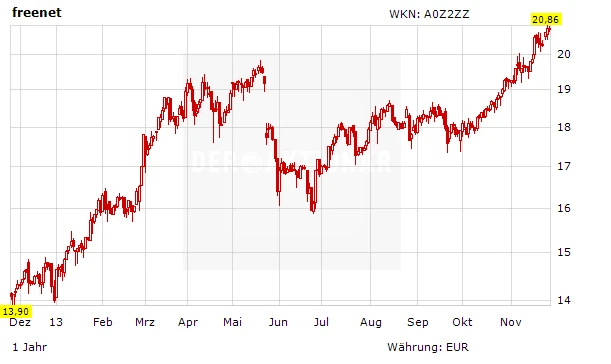 Die Experten der Platow Börse verweisen auf zufriedenstellende Zahlen von Freenet für das dritte Quartal des laufenden Jahres. Dank der starken Wettbewerbsstellung erhöhte der Konzern, der Telekommunikationsdienstleistungen anbietet, die Rentabilität deutlich. Im Gesamtjahr dürfte der Telekom-Provider den gewinn je Aktie auf 1,95 Euro erhöhen. Damit ließe sich die Ausschüttung erneut erhöhen. Die Dividendenrendite von 7,3 Prozent für das laufende Jahr bleibt die Aktie für substanzorientierte Anleger attraktiv, vor allem, da die Kundenzahl weiter steigen und damit auch die Ausschüttung weiter angehoben werden dürften. Charttechnisch wurde zudem ein Kaufsignal erzeugt, als die Notierung jüngst auf mehr als 20 Euro gestiegen ist. Investoren sollten deshalb die Anteile bis zu einem Kurs von 20,50 Euro kaufen und ihr Engagement bei 14,95 Euro absichern.