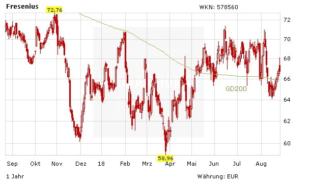 DER AKTIONÄR rät, bei beiden Werten investiert zu bleiben. Stopps bei 54,00 Euro beim Mutterkonzern Fresenius sowie bei 69,00 Euro bei der Tochter Fresenius Medical Care sichern nach unten ab.