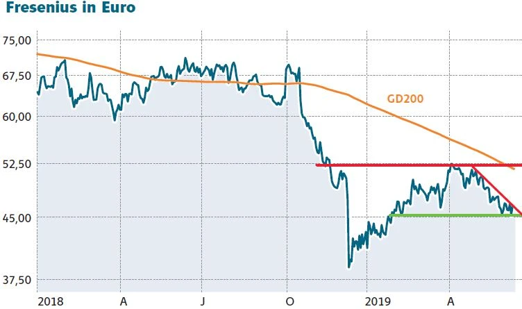 Die Aktie zeigt sich davon unbeeindruckt. Mehr als ein Prozent geht es bei Fresenius am heutigen Donnerstag nach oben auf 45,84 Euro. Den kurzfristigen Abwärtstrend kann das Papier damit allerdings noch nicht verlassen. Anleger sichern ihre bestehenden Positionen mit einem Stopp bei 39,50 Euro nach unten ab. Nach oben ist die Aktie durch die 200-Tage-Linie sowie den knapp darüber verlaufenden Widerstand bei 52,82 Euro „gedeckelt“. Um hier den Ausbruch nach oben zu schaffen, müssten schon starke News folgen. In den vergangenen Monaten enttäuschte der Konzern allerdings mit mehreren Gewinnwarnungen.