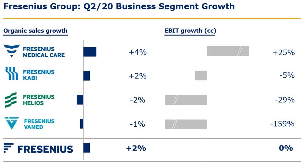 Der Gesundheitskonzern Fresenius dampft wegen der Corona-Krise wie bereits erwartet seine Ziele für das Gesamtjahr ein. Im zweiten Quartal hatte das Unternehmen die negativen Effekte der Virus-Pandemie vor allem bei seinen Töchtern Kabi und Vamed, aber auch wegen einer unsicheren Vergütung im spanischen Krankenhausgeschäft zu spüren bekommen.