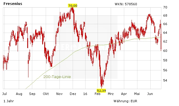 Die Aktie von Fresenius reagiert am Montagmorgen mit Verlusten auf die Meldung. Bei Lang & Schwarz verliert das Papier 1,4 Prozent und ist damit schwächster DAX-Wert. Dennoch – auch wenn die Meldung kurzfristig für etwas Unsicherheit sorgt, an den starken Aussichten von Fresenius ändert dies nichts. Fresenius gehört in den vergangenen zwölf Monaten zu den stärksten Werten im DAX. Und auch derzeit präsentiert sich Fresenius charttechnisch enorm stark.