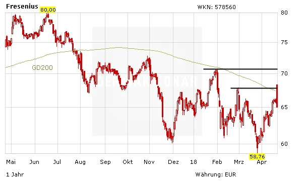 Bis zu endgültigen Klärung des Ganzen dürfte das Thema den Aktienkurs von Fresenius wohl vorerst weiter belasten. Die Absage ist aber ganz klar positiv zu werten. Aus charttechnischer Sicht wäre wichtig, dass der Aktie der nachhaltige Sprung über die 200-Tage-Linie gelingt. Dies wäre ein klares positives Signal. Interessierte Neueinsteiger warten dieses ab.