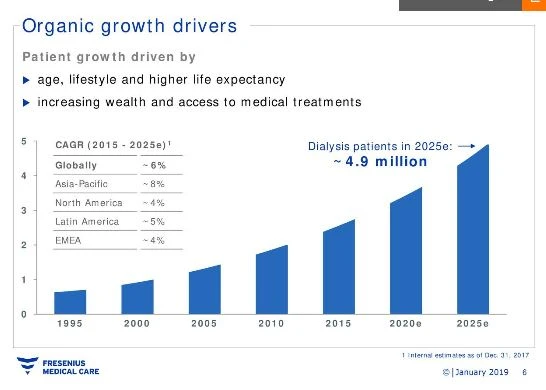 Er sei inzwischen zuversichtlicher, dass die FMC-Prognosen eines Umsatzwachstums und Konzernergebnisses auf etwa dem Niveau des Vorjahres eine Untergrenze bildeten. Es gebe Potenzial für einen, wenn auch geringen, Zuwachs beim Nettoüberschuss in diesem Jahr, auch wenn die Probleme, die in der zweiten Jahreshälfte 2018 ins Kontor geschlagen hätten, immer noch präsent seien und es Zeit brauche, Lösungen zu finden. Verbesserungen erwartet Adlington daher vor allem in der zweiten Hälfte des neuen Jahres. Positiv hob Adlington den Zukauf des US-Konzerns NxStage hervor, der der Geräte für die Heimdialyse anbietet. Ab dem dritten Jahr nach der Übernahme dürfte er positiv zum Konzernergebnis beitragen.
