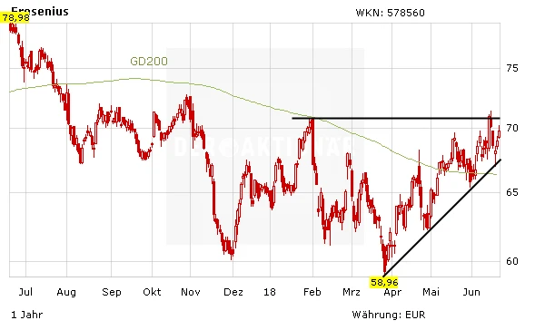 Die Deutsche Bank hat das Kursziel für Fresenius vor Kurzem von 82 auf 84 Euro angehoben und die Einstufung auf „Buy" belassen. Analyst Gunnar Romer stockte seine Gewinnerwartung für den Medizinkonzern in seiner Studie leicht auf. Er ist zuversichtlicher für die Flüssigmedizin-Sparte Kabi und den Währungseinfluss. Die kurzfristigen Aussichten der Kliniktochter Helios schätzt er allerdings verhaltener ein.